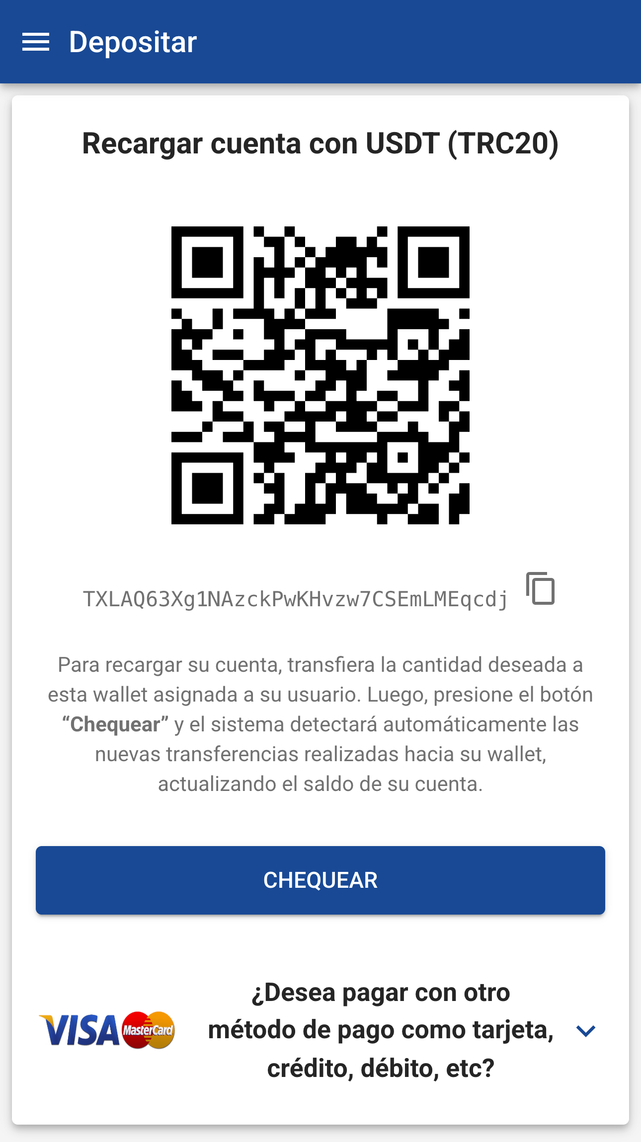 - Si realizas un envío, presiona el botón “Chequear” después de unos minutos para actualizar tu saldo.